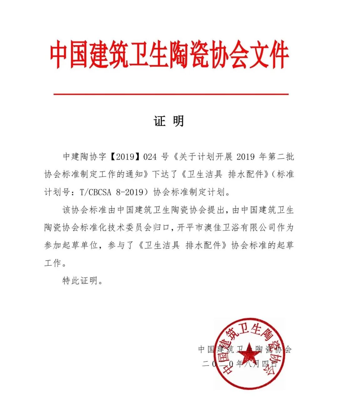 澳佳衛浴還是行業標準項目起草單位之一,彰顯企業在技術研發、產品質量上的實力。