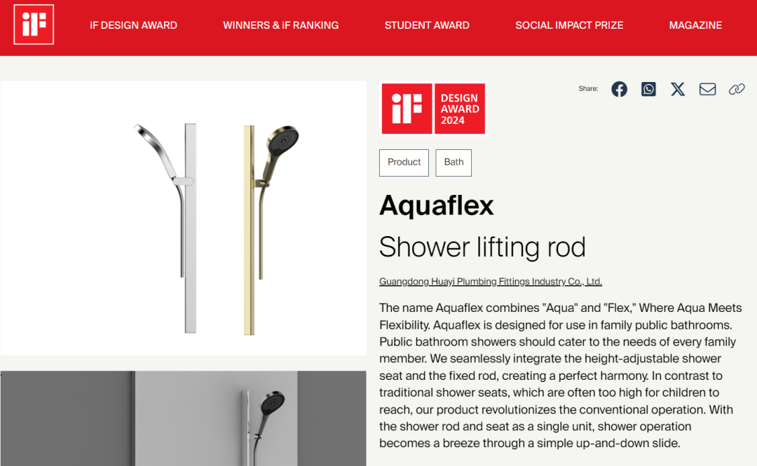 2024開局,華藝就打響開門紅“第一炮”!近日,2024德國IF設計大獎公布最終獲選名單,在這場權威的國際設計盛宴中,華藝衛浴參選的“SWAN電子面盆龍頭”、“Tube面盆龍頭”、“Aquaflex花灑升降桿”憑借出色的設計在數以千萬件優秀作品中脫穎而出,榮獲2024德國IF設計大獎。