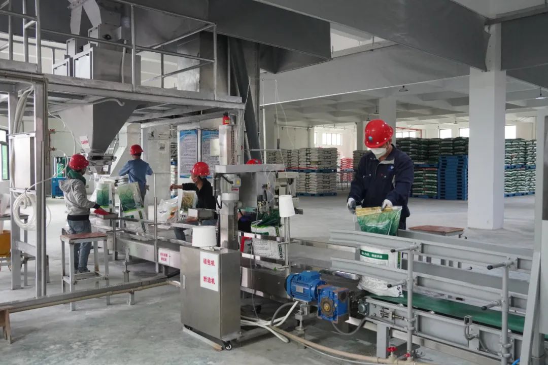 人勤春來早,位于月山鎮的廣東凱米瑞特肥科技有限公司同樣進入“加速跑”模式,生產車間機器轟鳴,工人們熟練地進行產品的打包,與機械臂默契配合,不斷拉滿生產“進度條”。