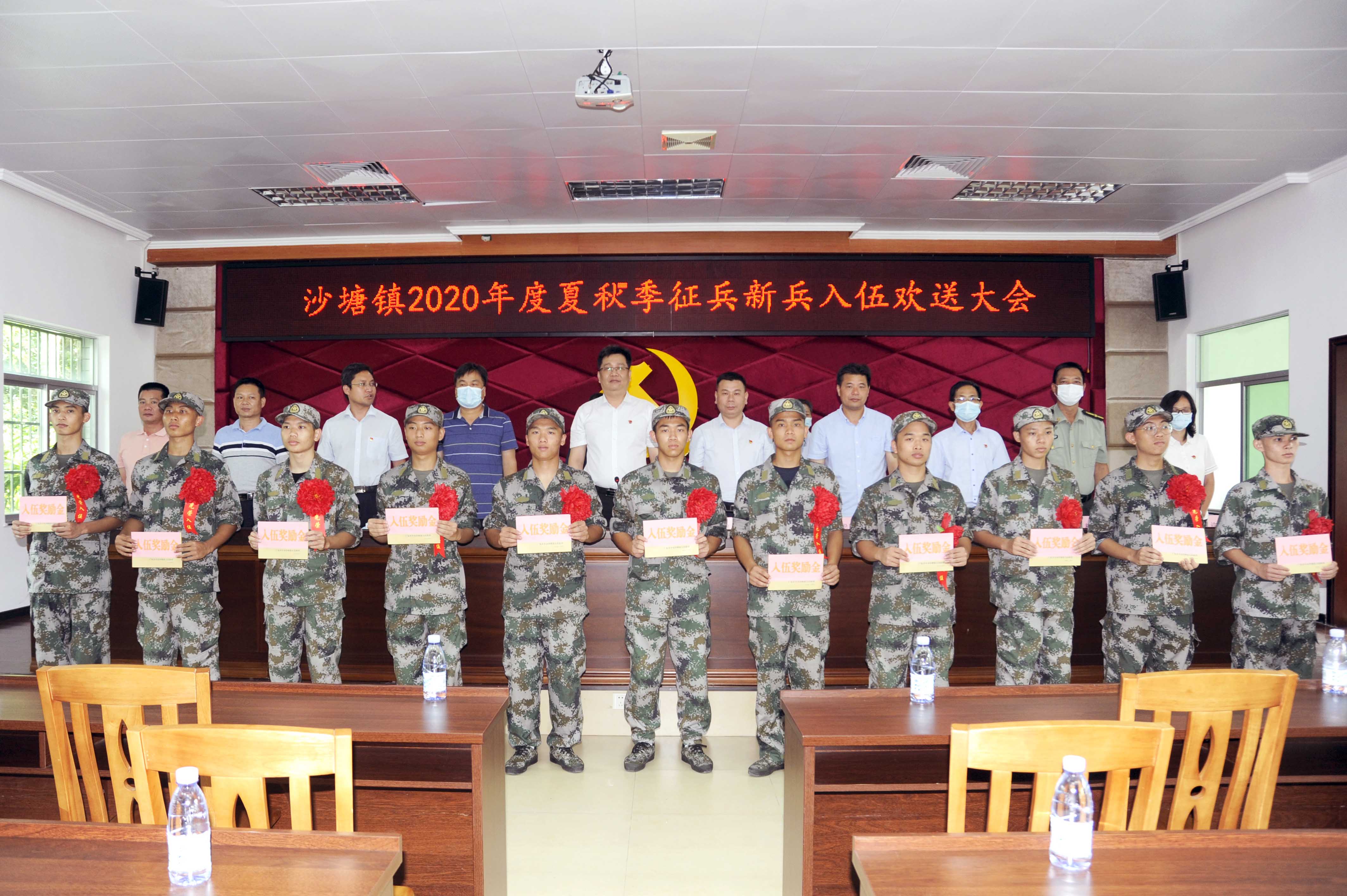 鑼鼓陣陣,軍歌嘹亮。9月4日下午,沙塘鎮舉行2020年夏秋季征兵新兵入伍歡送大會,歡送11名光榮入伍的青年。沙塘鎮全體領導班子、村(社區)干部、入伍青年及家屬80余人參加本次歡送會。