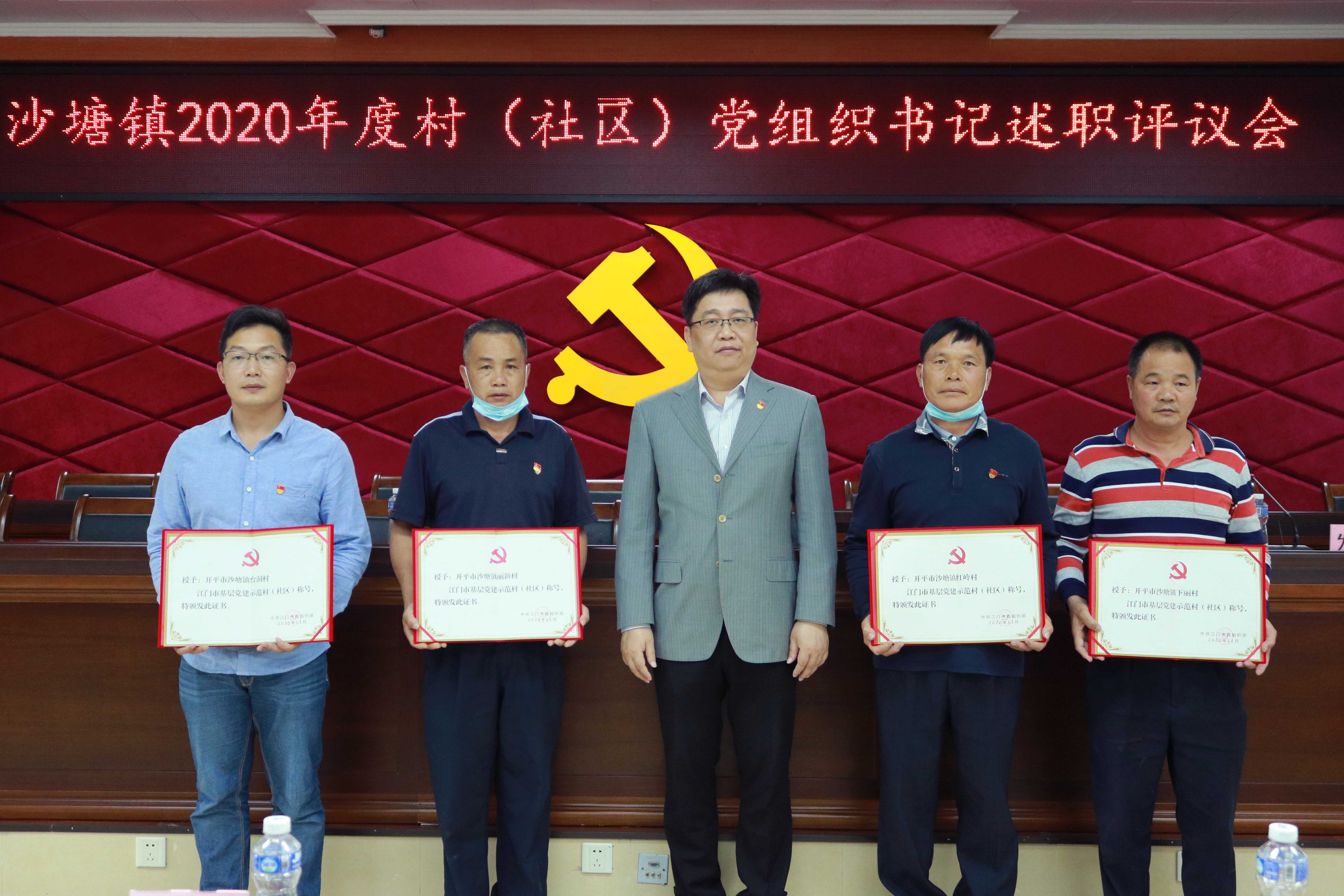 隨后,各村(社區(qū))黨組織書記依次進行了現(xiàn)場述職,實事求是地對2020年度工作進行總結(jié),既各具特色亮點,又深刻剖析存在的問題和不足,并匯報了2021年度的工作思路。會上還對獲得“江門市基層黨建示范村”稱號的紅嶺村、麗新村、臺洞村和下麗村頒發(fā)榮譽證書。