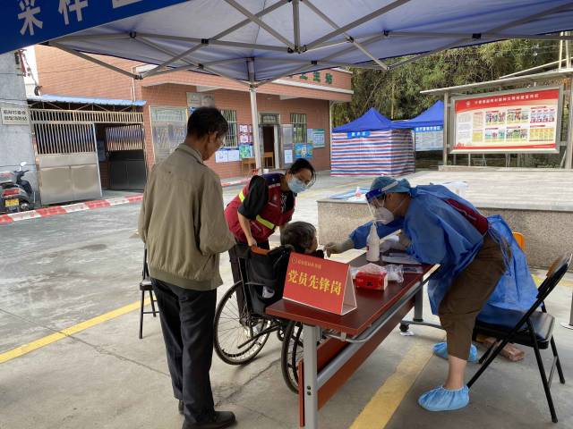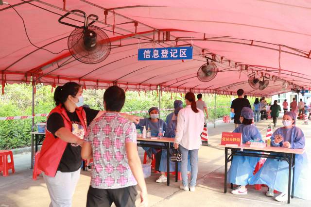 在黨旗引領下,黨員先鋒隊、網格員、青年志愿者、新業態新就業群體等積極投身抗疫一線,協助群眾做好核酸檢測工作