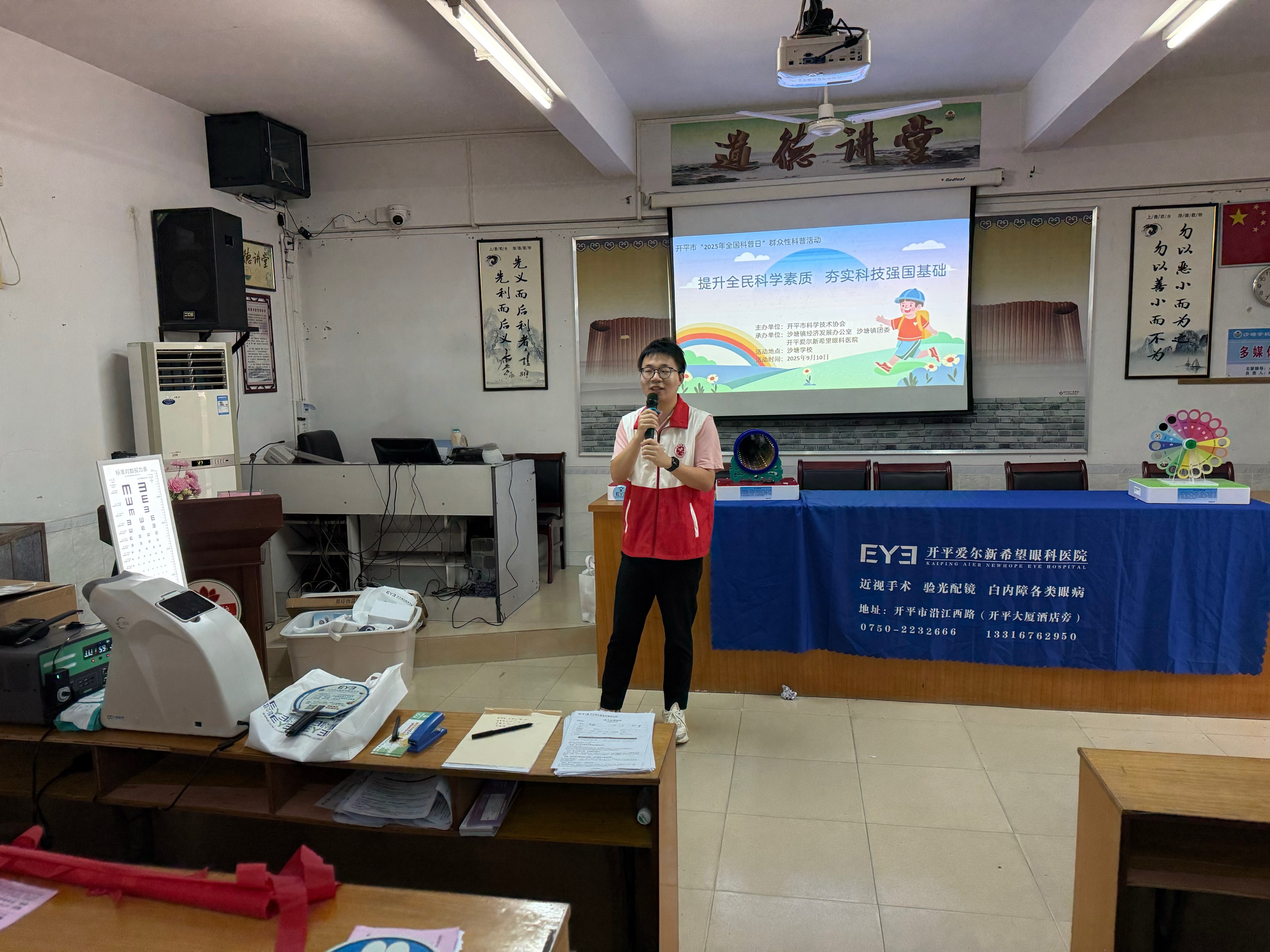 為積極推動青少年視力健康保護工作,沙塘鎮經濟發展辦公室聯合鎮團委、開平愛爾新希望眼科醫院,于2025年9月10日在沙塘學校成功舉辦“提升全民科學素質 夯實科技強國基礎”全國科普日活動。本次活動以“科學護眼,光明未來”為核心,通過專業科普、互動教育與視力檢查等形式,為100多名學生帶來了一場融合醫學、科技與教育的視力健康知識科普活動,著力推動形成愛眼護眼的良好氛圍。
