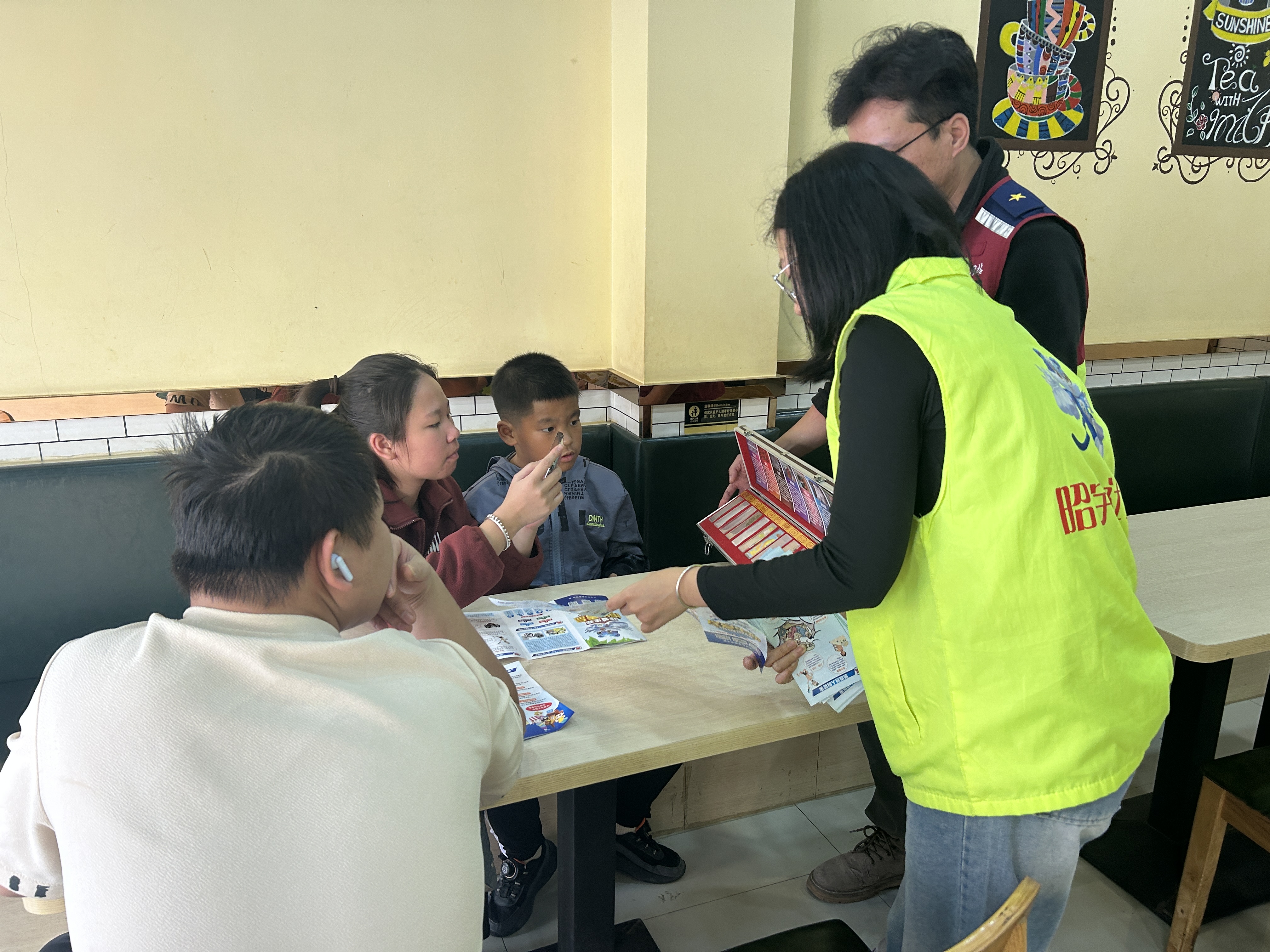 為進一步增強轄區群眾禁毒意識和自我保護能力,遏制涉毒違法犯罪活動在餐飲消費場所滋生蔓延,切實筑牢年末禁毒安全防線。近日,沙塘鎮平安法治辦公室聯合聯合沙塘墟居委會、開平市昭宇社會工作綜合服務中心,走進轄區商鋪,開展“遠離毒品侵害,守護美好家園”禁毒宣傳活動。
