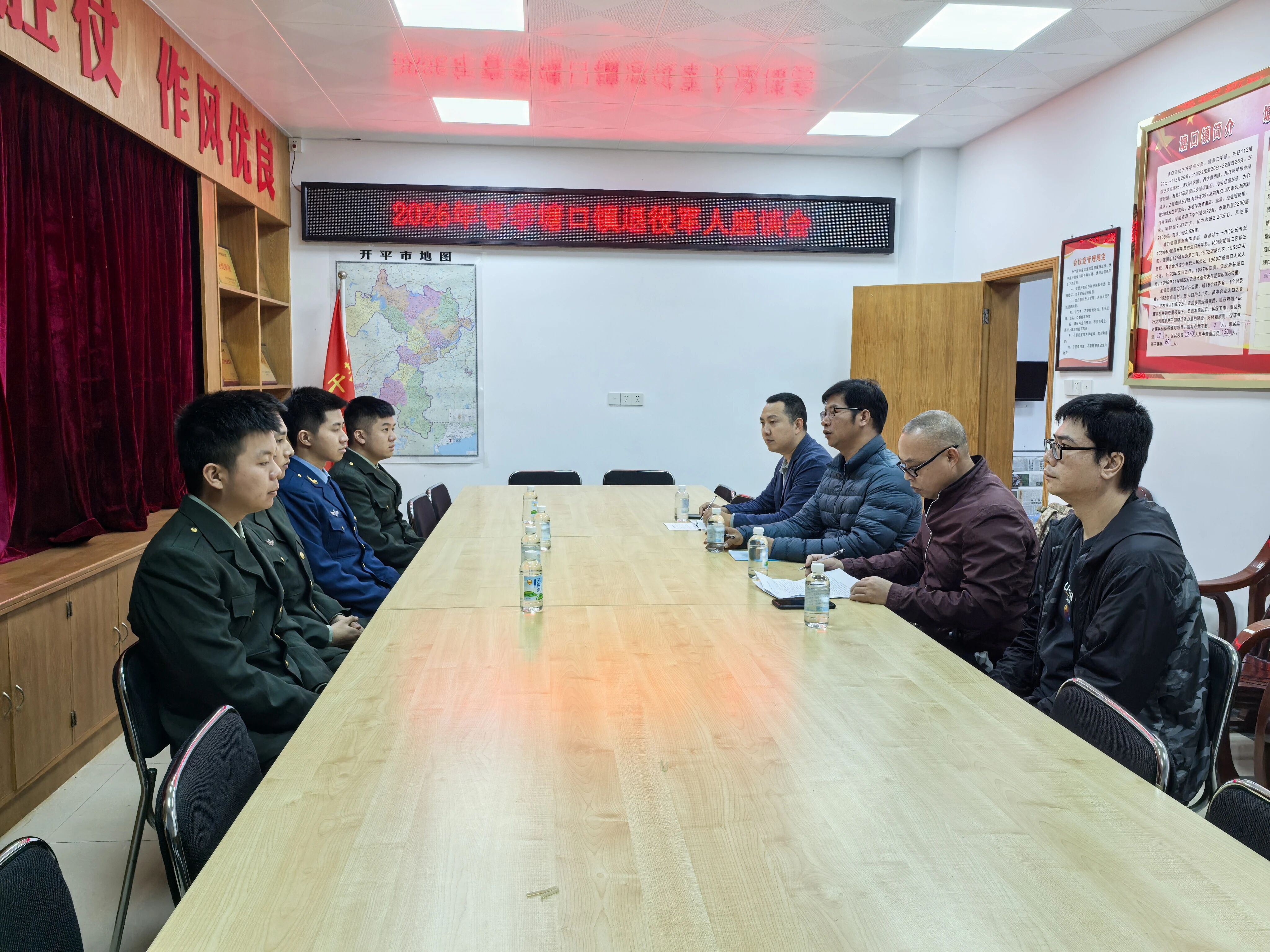 春風送暖,榮歸故里。為熱烈歡迎2026年春季退役士兵光榮返鄉,切實做好服務保障工作,3月4日上午,塘口鎮召開春季退役士兵座談會,鎮相關領導、退役軍人服務站工作人員及本年度春季退役的4名士兵參加會議。 會上,鎮黨委委員、武裝部部長李劍飛向圓滿完成國防使命、載譽歸來的退役士兵表示熱烈歡迎和崇高敬意,詳細介紹了我鎮退役軍人服務保障、就業創業扶持、技能培訓、優待撫恤、社保接續等政策,現場回應大家關心的落戶、優待證辦理、學歷提升等問題。 接著,塘口鎮人大副主席方朝湛勉勵全體退役士兵,要退伍不褪色、退役不退志,把部隊的優良作風、過硬素質帶到地方,主動融入家鄉發展,積極投身鄉村振興、基層治理、平安建設等工作,在新崗位上再立新功、再創佳績。 退役士兵們紛紛發言,分享軍旅感悟與未來規劃,感謝黨委政府的關心關懷。大家一致表示,將永葆軍人本色,盡快轉變角色、適應新環境,以實干擔當回報家鄉、服務人民。 下一步,塘口鎮退役軍人服務站將持續做好退役軍人服務管理工作,用心用情用力解決實際困難,搭建就業創業平臺,切實增強退役軍人的歸屬感、榮譽感和幸福感。