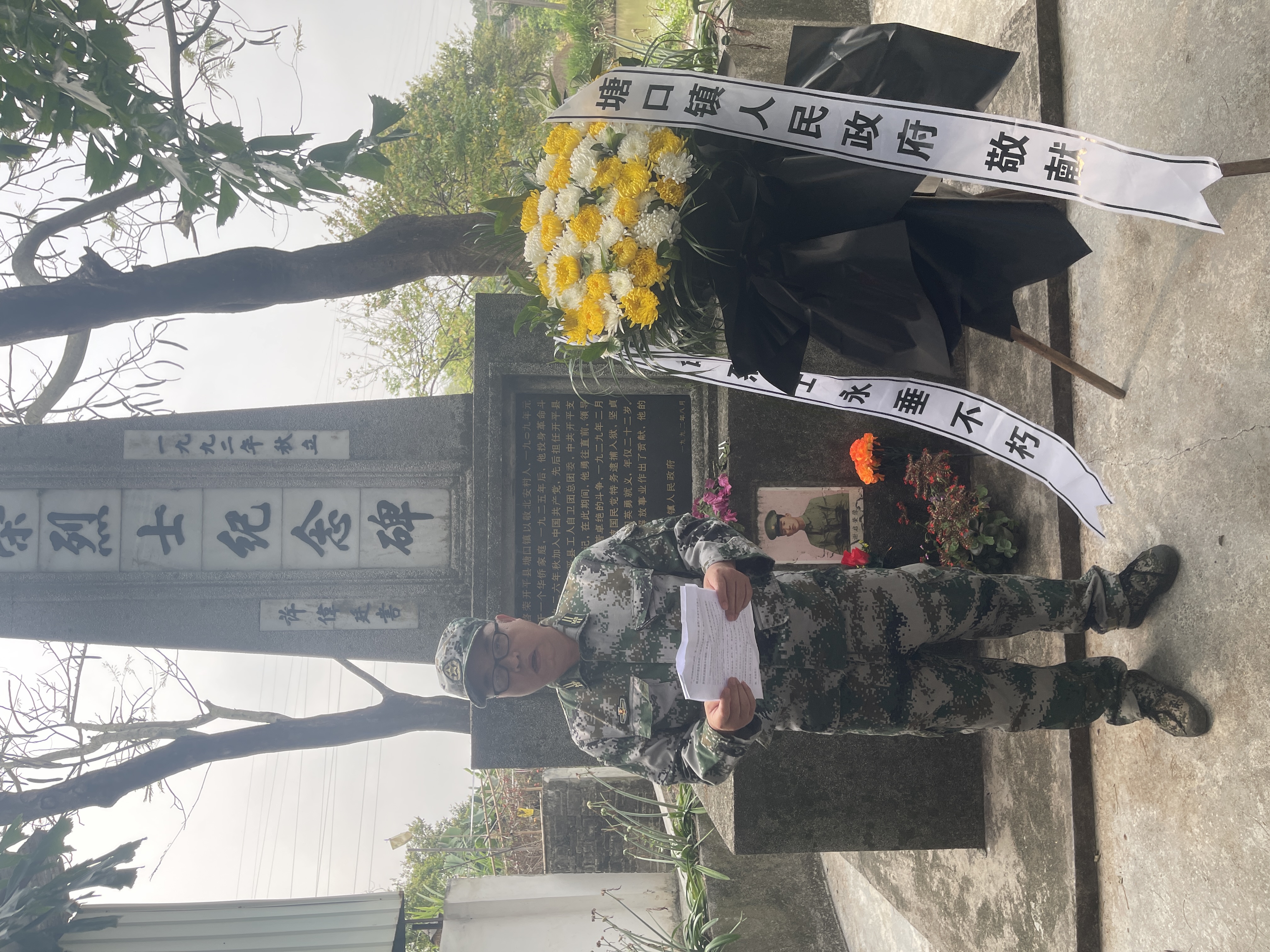 春風(fēng)寄哀思,豐碑鑄忠魂。為緬懷革命先烈豐功偉績(jī),傳承紅色精神。2026年4月2日上午,塘口鎮(zhèn)武裝部(退役軍人服務(wù)站)連同鎮(zhèn)團(tuán)委、鎮(zhèn)關(guān)工委一行人前往塘口鎮(zhèn)謝啟榮烈士紀(jì)念碑,開(kāi)展“清明祭英烈”主題祭掃活動(dòng)。塘口鎮(zhèn)黨委委員余廣鴻,塘口鎮(zhèn)人大副主席方朝湛,塘口鎮(zhèn)關(guān)工委副主任謝均存參加了本次活動(dòng)。 活動(dòng)現(xiàn)場(chǎng)莊嚴(yán)肅穆,全體人員整齊列隊(duì),面對(duì)莊嚴(yán)的烈士紀(jì)念碑,大家肅立默哀,向?yàn)槿嗣窠夥藕蛧?guó)家富強(qiáng)英勇獻(xiàn)身的革命先烈致以崇高敬意。隨后,代表緩步上前敬獻(xiàn)花籃、整理緞帶,全體人員依次敬獻(xiàn)鮮花、三鞠躬,深情緬懷英烈不朽功勛,大家懷著崇敬之心瞻仰烈士紀(jì)念碑,重溫革命歷史,感悟初心使命。 活動(dòng)最后,謝均存向在場(chǎng)人員講述了謝啟榮同志生平的先進(jìn)事跡,接著,方朝湛勉勵(lì)大家,要以先烈為榜樣,不忘初心、牢記使命、珍惜當(dāng)下,把追思轉(zhuǎn)化為奮進(jìn)動(dòng)力,立足崗位擔(dān)當(dāng)作為,以實(shí)際行動(dòng)賡續(xù)紅色血脈,為強(qiáng)國(guó)建設(shè)、民族復(fù)興貢獻(xiàn)力量。