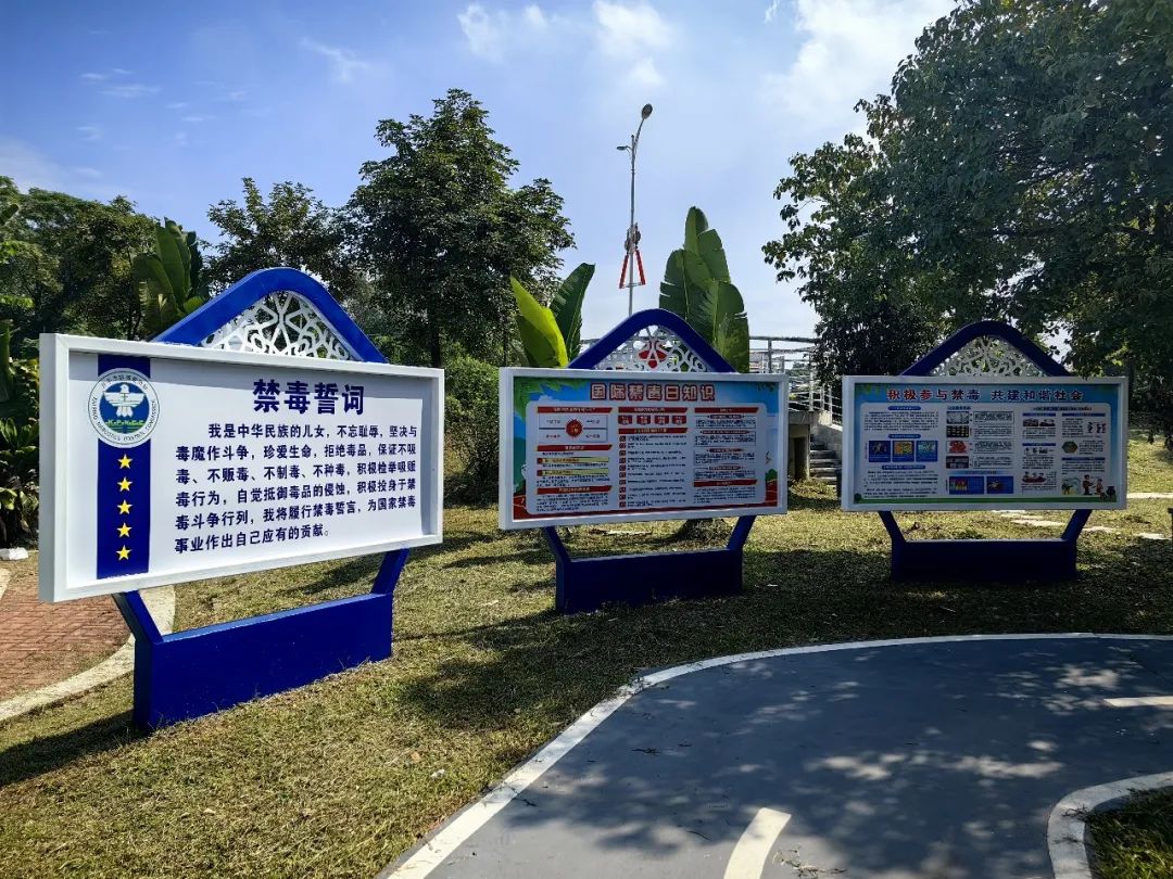 11月8日上午,月山鎮舉行禁毒長廊公園揭牌儀式。江門市禁毒辦副主任、禁毒支隊政委葉石健,開平市副市長、公安局局長陳永強,開平市公安局副局長黃少龍,開平市禁毒辦常務副主任、禁毒大隊大隊長吳培英,開平市禁毒辦專職副主任譚立文,月山鎮黨委書記馮我占,黨委副書記張育充,副鎮長、派出所所長勞德權出席揭牌儀式。月山鎮綜治辦、派出所、禁毒辦、公益創投社工、昭宇禁毒社工及各村(社區)書記共40多人參加活動。 月山鎮黨委書記馮我占在揭牌儀式上致辭,就做好新形勢下禁毒工作提出三點意見,一是下好“責任棋”,進一步提高政治站位,切實增強做好禁毒工作的責任感、使命感和緊迫感;二是下好“宣傳棋”,進一步強化宣傳陣地,以群眾喜聞樂見的方式開展宣傳教育活動;三是下好“保障棋”,進一步加強隊伍建設,形成強大合力,筑牢禁毒防線。同時,號召社會各界眾志成城、共同參與,掀起全民禁毒的新熱潮,為創建平安月山、法治月山做出新的更大的貢獻。 在禁毒宣傳區,江門市禁毒辦副主任、禁毒支隊政委葉石健指出,要以“教育+互動”的形式,普及、傳授禁毒重點知識,讓群眾在禁毒長廊公園里散步、游玩的同時也能學習了解禁毒常識,推動禁毒意識入心入腦。 禁毒長廊公園的落成,讓廣大群眾能夠參與禁毒宣傳教育,實現禁毒宣傳與群眾“零距離”,營造了全民禁毒的濃厚社會氛圍。 為進一步強化禁毒宣傳教育,提高廣大群眾的禁毒意識,充分調動社會力量參與禁毒事業,營造全民參與禁毒的濃厚氛圍,月山鎮建設禁毒長廊公園,讓群眾在休閑娛樂的同時接受毒品預防教育,切實提高參與禁毒工作的積極性和主動性。 走進禁毒長廊公園,可以看到園內設有禁毒宣傳欄、禁毒宣誓詞、禁毒文化長廊、禁毒卡通形象大使“粵虎”“邑虎”、林則徐銅像等多個板塊。 月山鎮禁毒長廊公園的落成,為月山鎮禁毒工作開辟了新的宣傳陣地,讓禁毒宣傳更接地氣、更有持續性、更具影響力。
