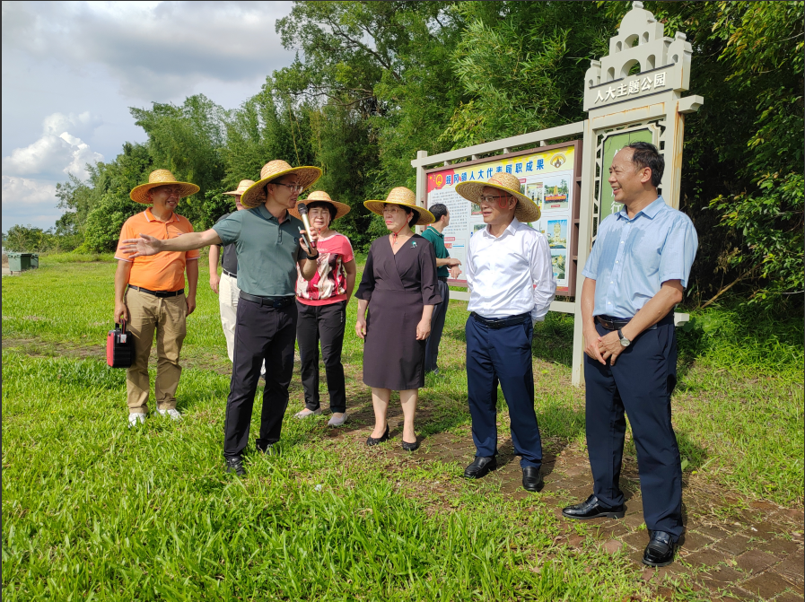 在人大主題公園,蜆岡鎮人大主席黃勇志向調研組詳細介紹了公園的建設情況。該公園依托13株百年以上的三級保護古樹,匠心獨運地打造了“兩廊兩亭兩點”景觀布局,并巧妙植入人大元素,將“人民選我當代表,我當代表為人民”這一核心理念貫穿始終,打造開平市首個人大主題公園,也是江門市人大第一批全過程人民民主實踐基地。它不僅是當地居民休閑娛樂的好去處,更是聽民聲、匯民意、聚民智的重要平臺,也是展示全過程人民民主最基層實踐的鮮活載體和響亮品牌。凌傳茂對人大主題公園的建設成果和創新舉措給予充分肯定,強調要持續發揮公園的平臺作用,密切人大代表與群眾的聯系,深入了解民眾需求,及時傳遞民眾聲音,切實解決民眾憂慮,不斷豐富具有僑鎮特色的全過程人民民主實踐內涵,為推動“百縣千鎮萬村高質量發展工程”(以下簡稱“百千萬工程”)貢獻人大力量。