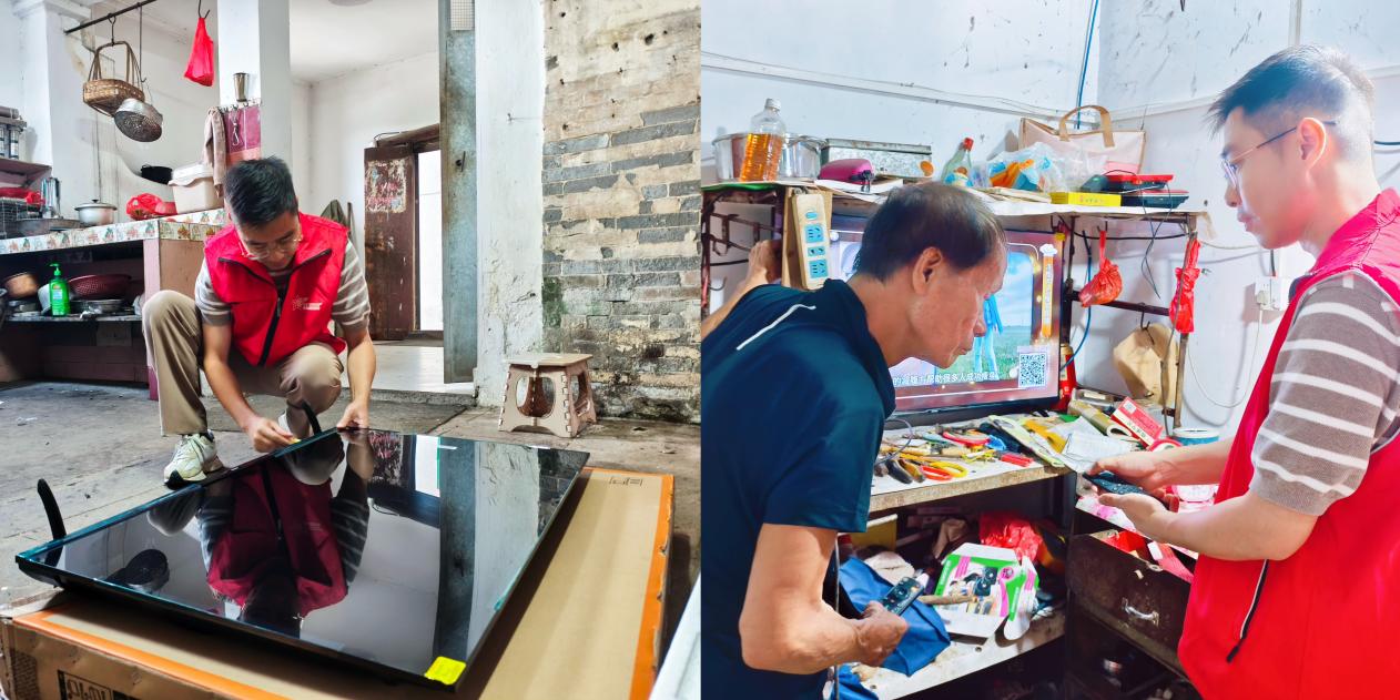 在坎田村76歲特困退役軍人周伯家中,得知周伯家中電視故障后,江門市退役軍人事務(wù)局立馬為周伯送來新電視機(jī),并由蜆岡鎮(zhèn)退役軍人服務(wù)站工作人員為周伯安裝和調(diào)試電視。“感謝大家對(duì)我的關(guān)愛。”看到這意外的驚喜,周伯開心不已。